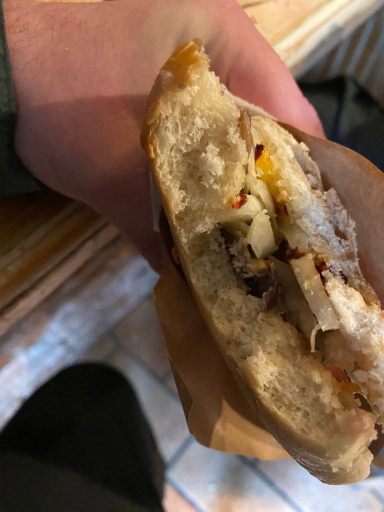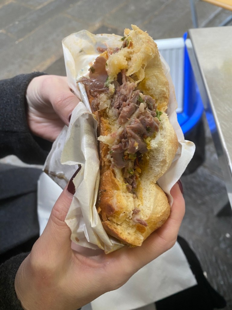 Can’t miss. This place is amazing. The paninis are five bucks and I ate three of them in ten minutes (venison with mushroom, cacio with truffle and pear, and anchovy with fennel). The guy slinging them is an old school icon, and when he asked me what I thought I gave him a big, enthusiastic chef’s kiss and blurted out every Italian superlative I could come up with, which pleased him greatly.